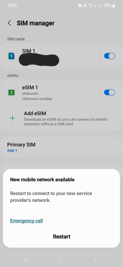 Follow the instructions for setting up the eSIM. Essentially, you’ll go into your phone’s SIM card manager settings. This is what my SIM manager setting screen looks like: