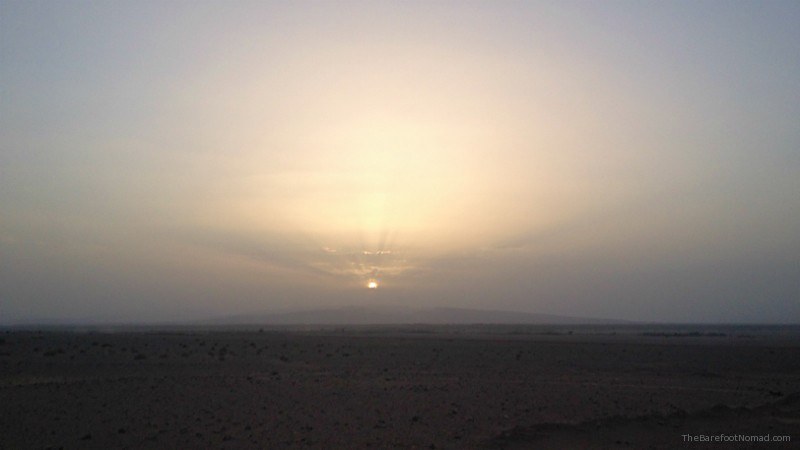 Behind us, the sun sinks slowly into the golden sand. The road, and the camel camp behind us have completely disappeared from view. There’s nothing here in the middle of desert but us; our little caravan plodding slowly through the sands near the desert oasis of Ouarzazate.